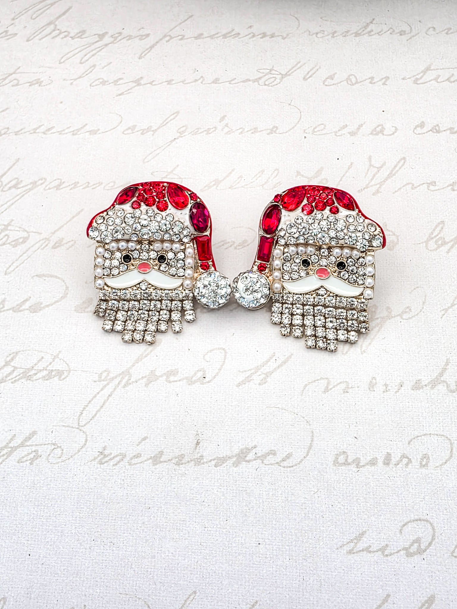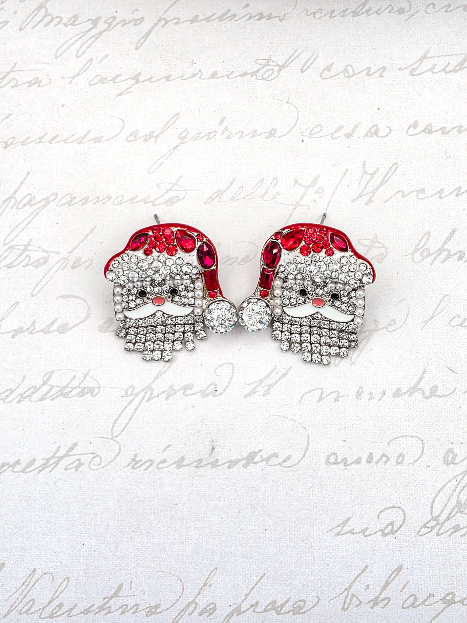 Santa Face Pave Crystal Stud Earrings-Red/White